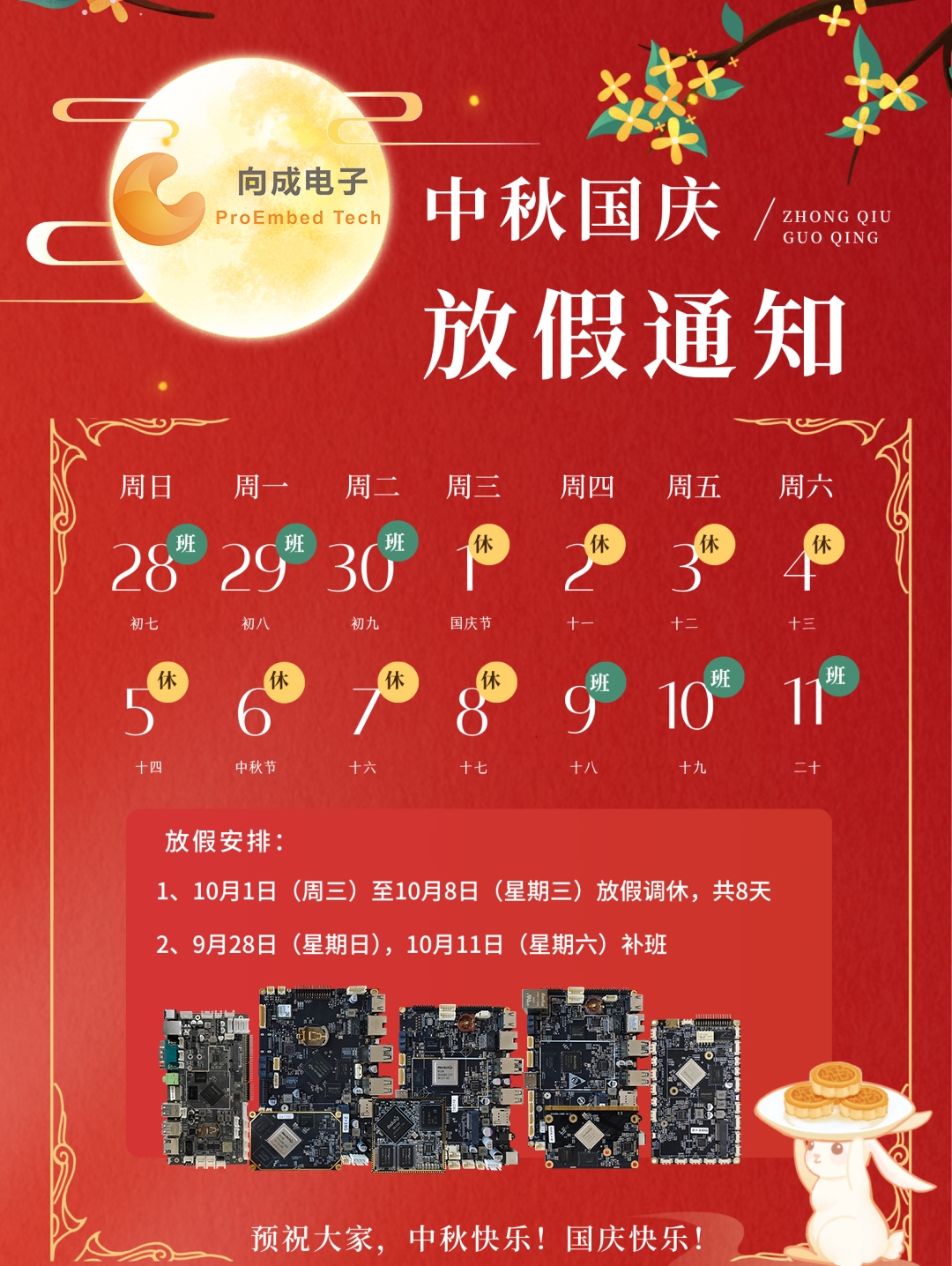 向成電子2025年國(guó)慶節(jié)及中秋節(jié)放假通知